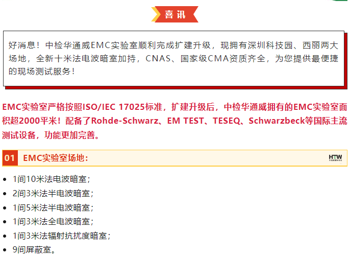 测试场地预约新选项, 中检华通威EMC实验室扩建升级!
