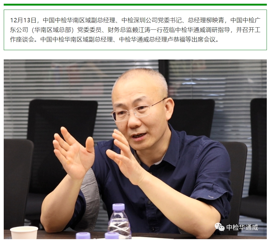 中国中检华南区域副总经理柳映青一行莅临中检华通威调研指导