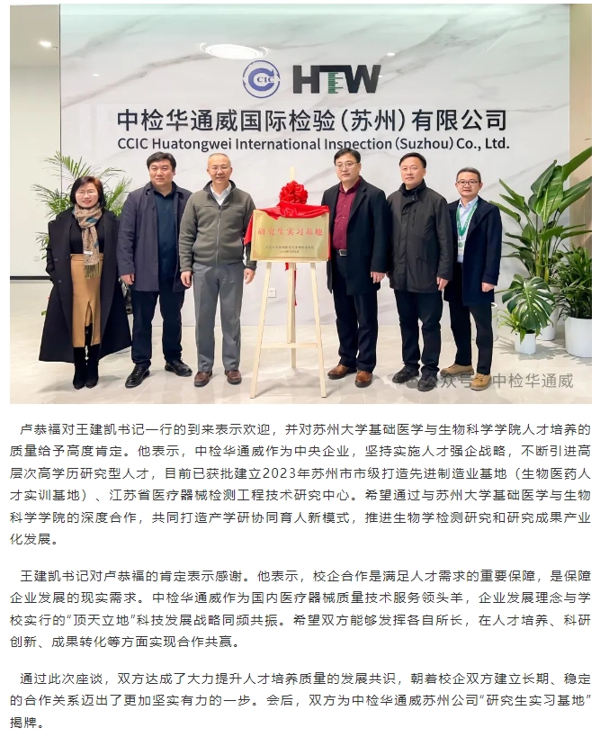 产学研融合丨中检华通威苏州公司同苏州大学基础医学与生物科学学院举行合作揭牌仪式