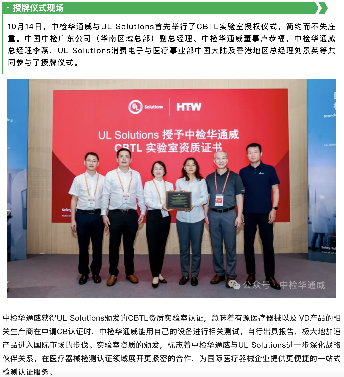 重要合作丨中检华通威荣获UL CBTL实验室授权
