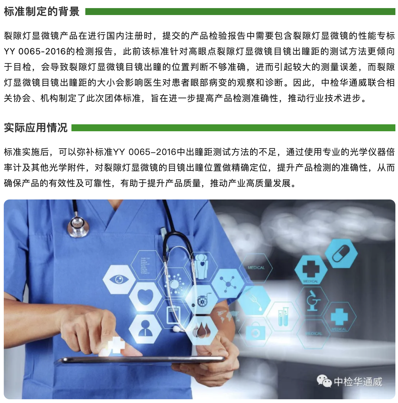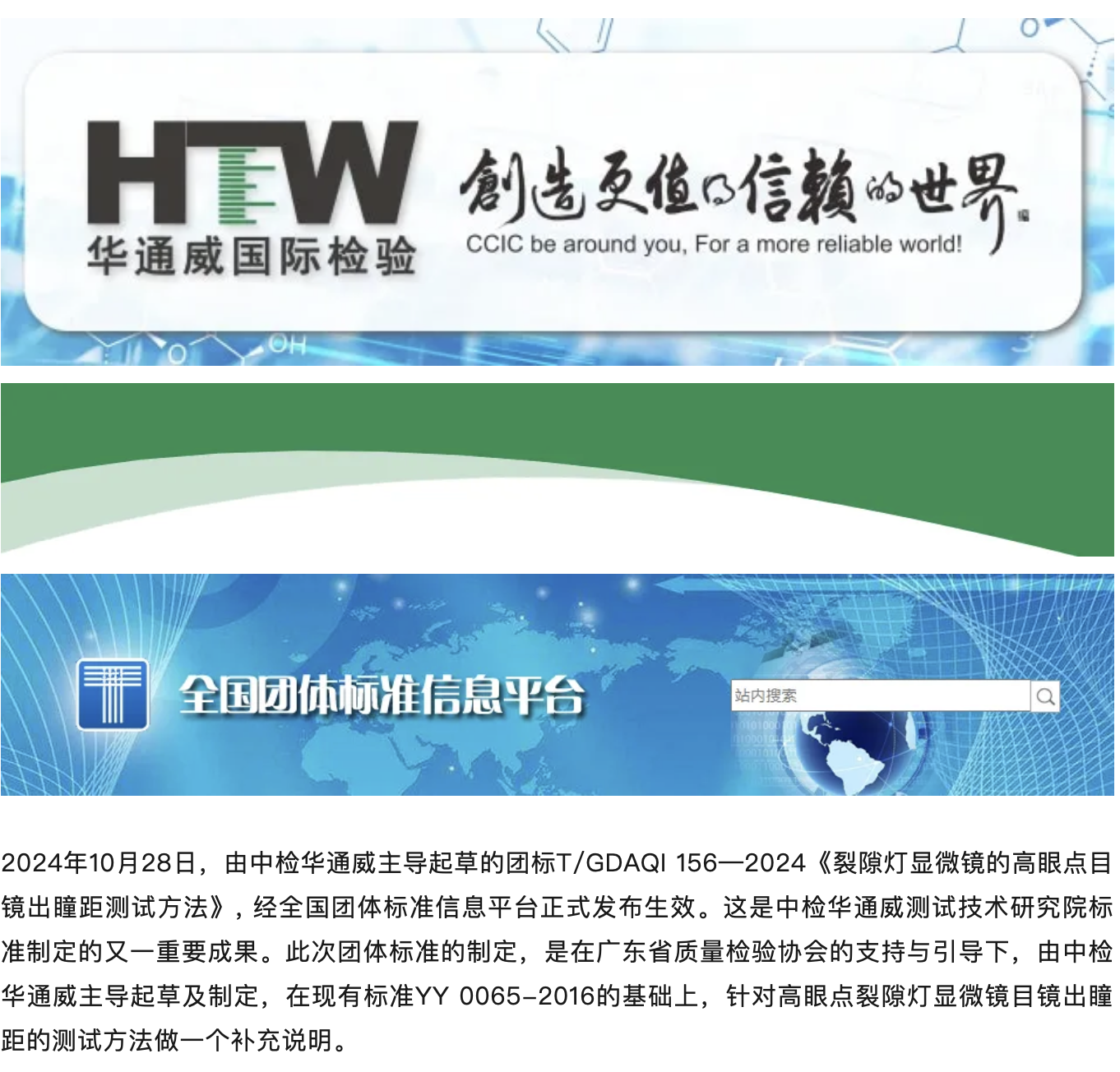 实力认证丨中检华通威主导的《裂隙灯显微镜的高眼点目镜出瞳距测试方法》团标正式发布