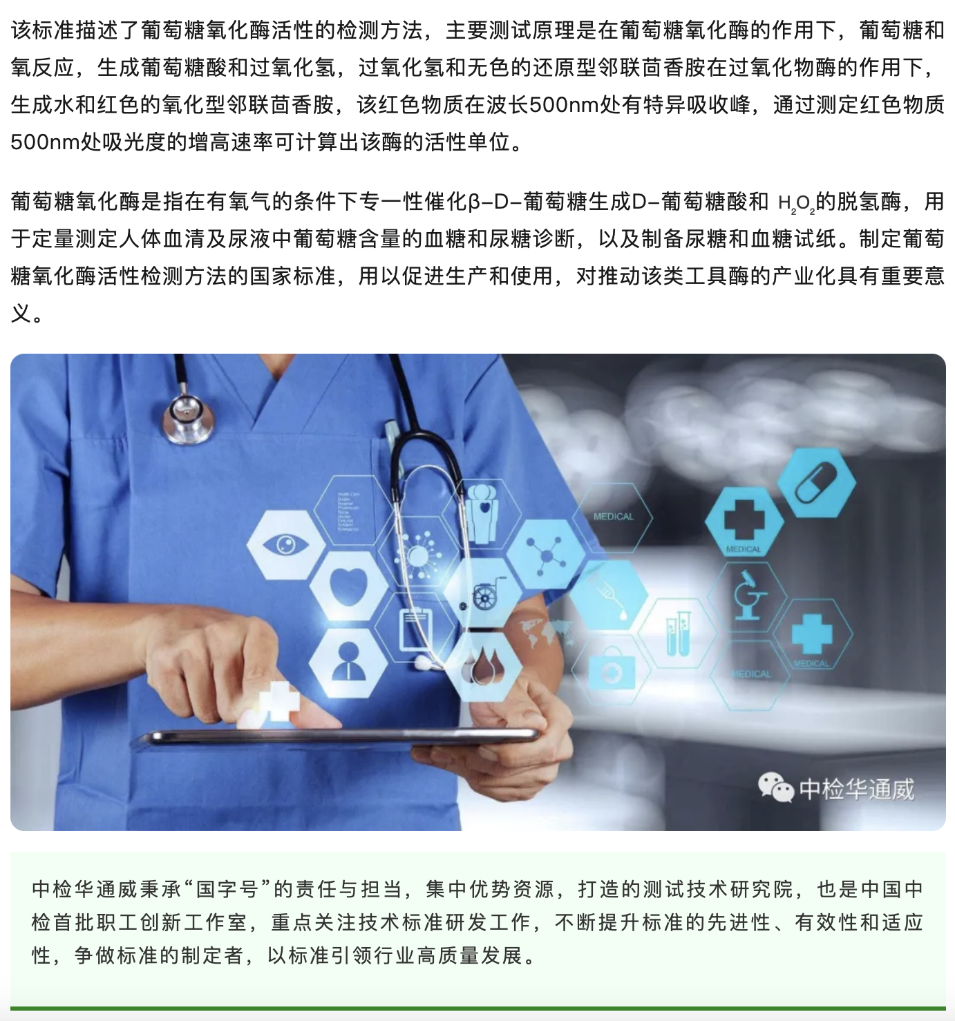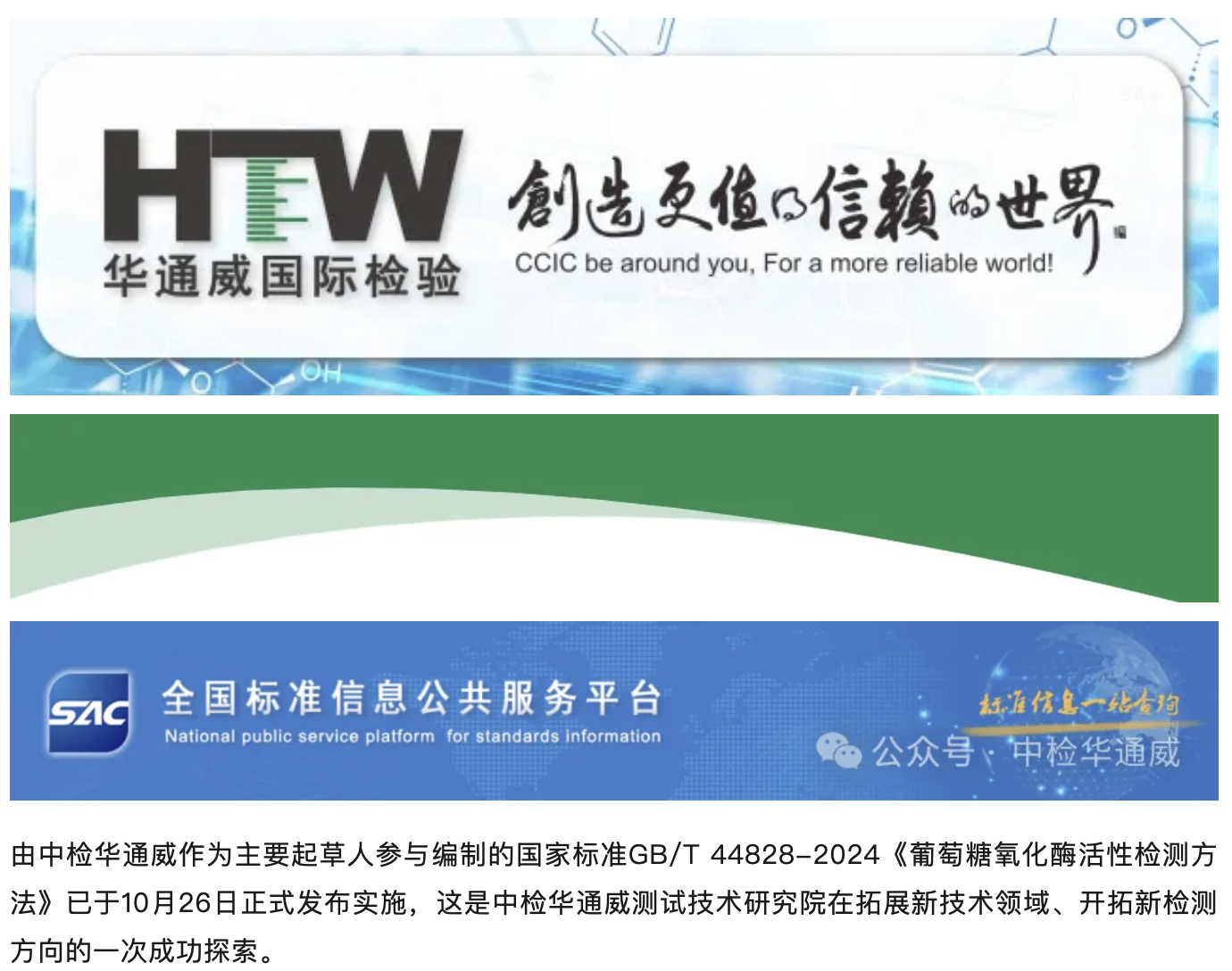实力认证丨中检华通威主要参与的《葡萄糖氧化酶活性检测方法》国家标准正式发布