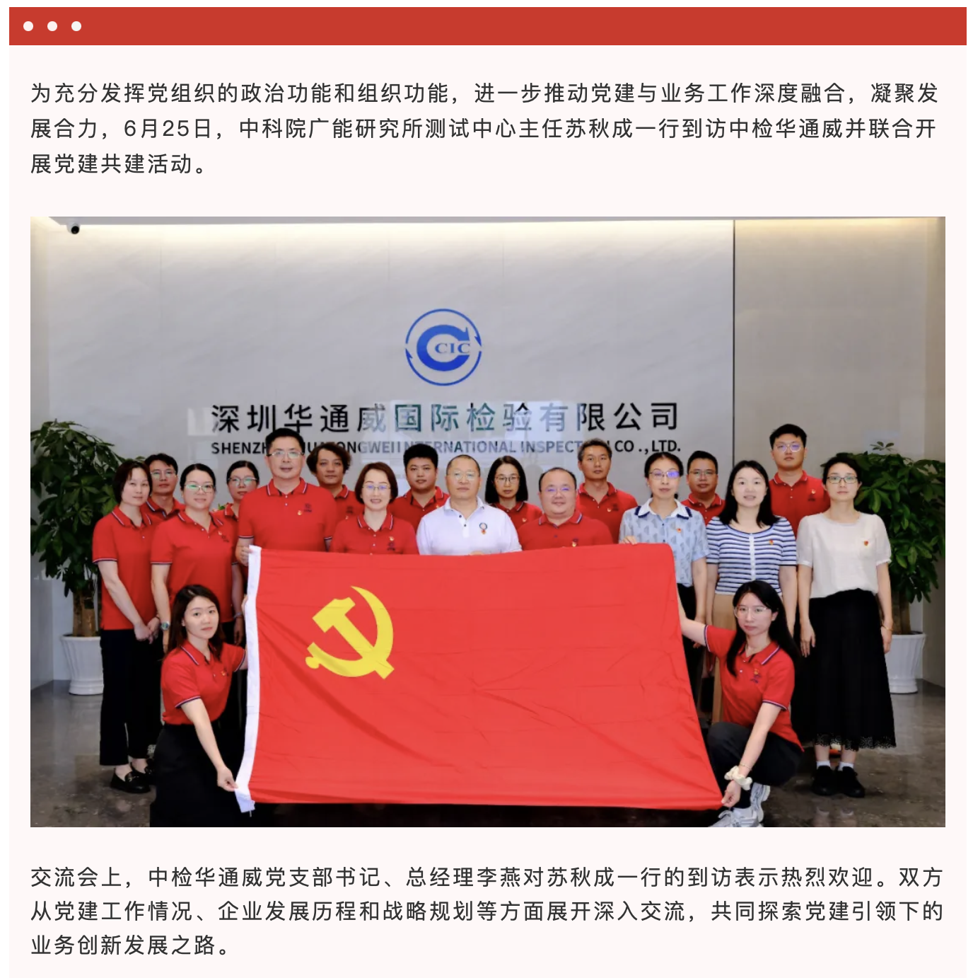 党建链动 产研共创|中检华通威与中科院广能研究所联合开展党建共建活动