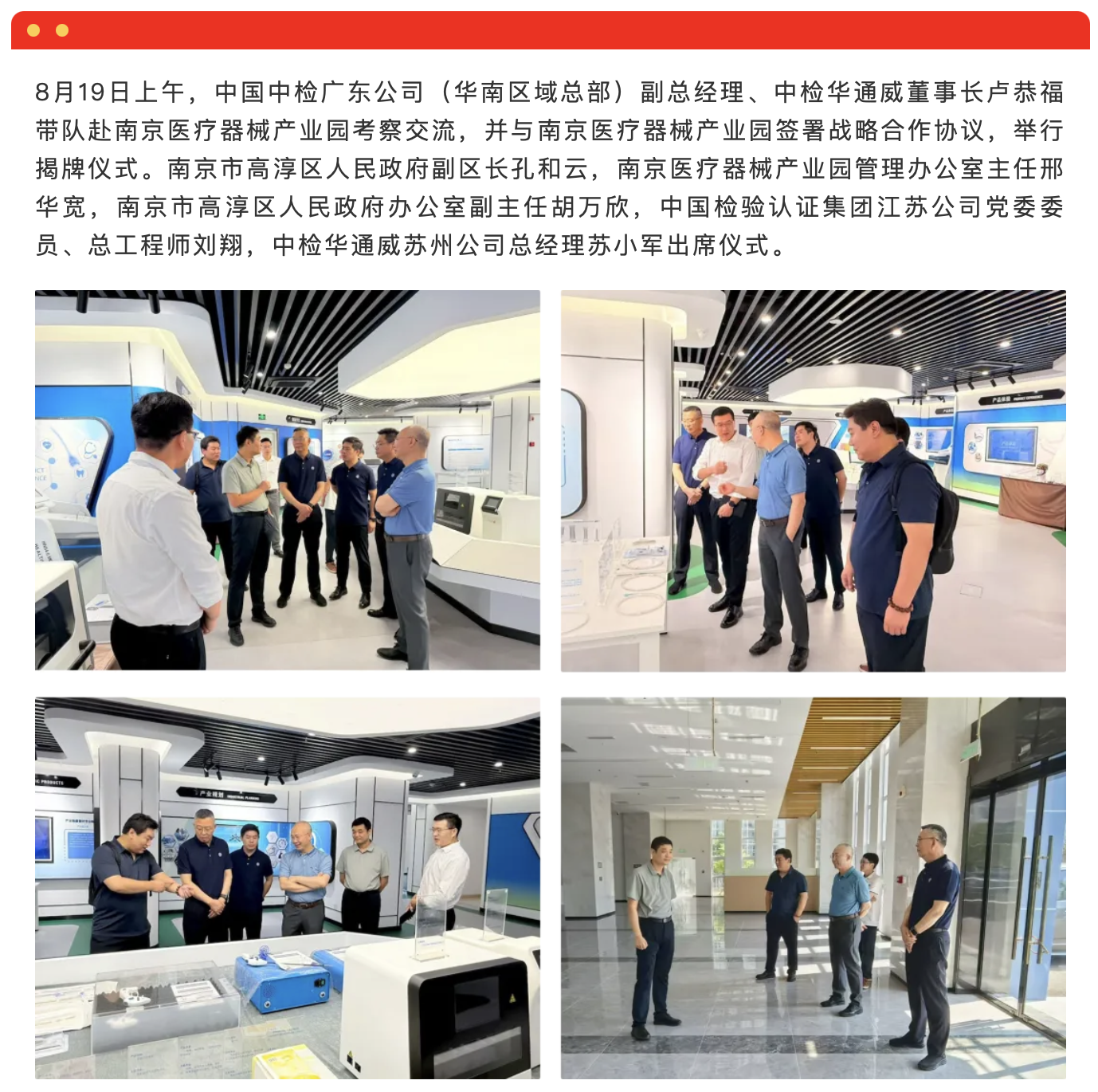 中检华通威与南京医疗器械产业园达成战略合作