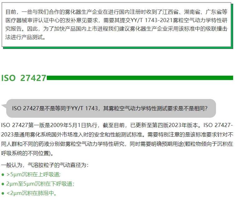 产品方案丨YY/T 1743还是ISO 27427?雾化器测试方法怎么选?