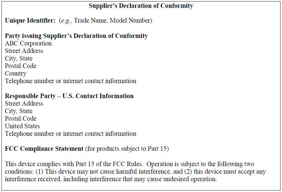 SDoC认证的产品在向美国进口或销售前, 必须要有责任方的唯一标识