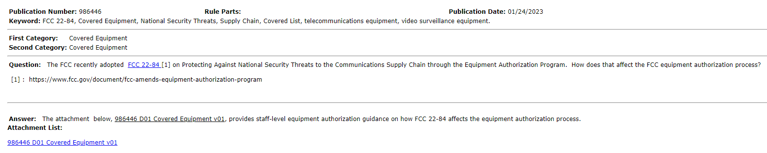 2023年2月6日, FCC 22-28法规已在联邦公报 (Federal Register)上发布并立即生效,