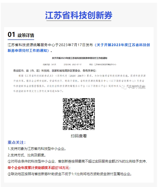 中检华通威(苏州)公司现已支持使用江苏省和苏州市两类科技创新券!