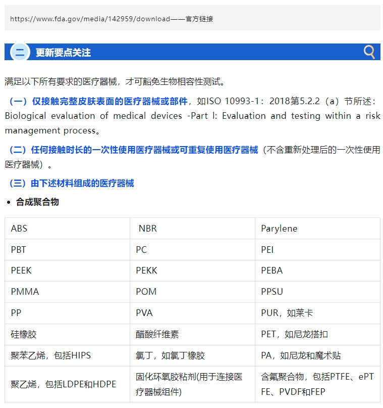 速看!FDA 明确豁免生物相容性测试的器械类型和材料清单