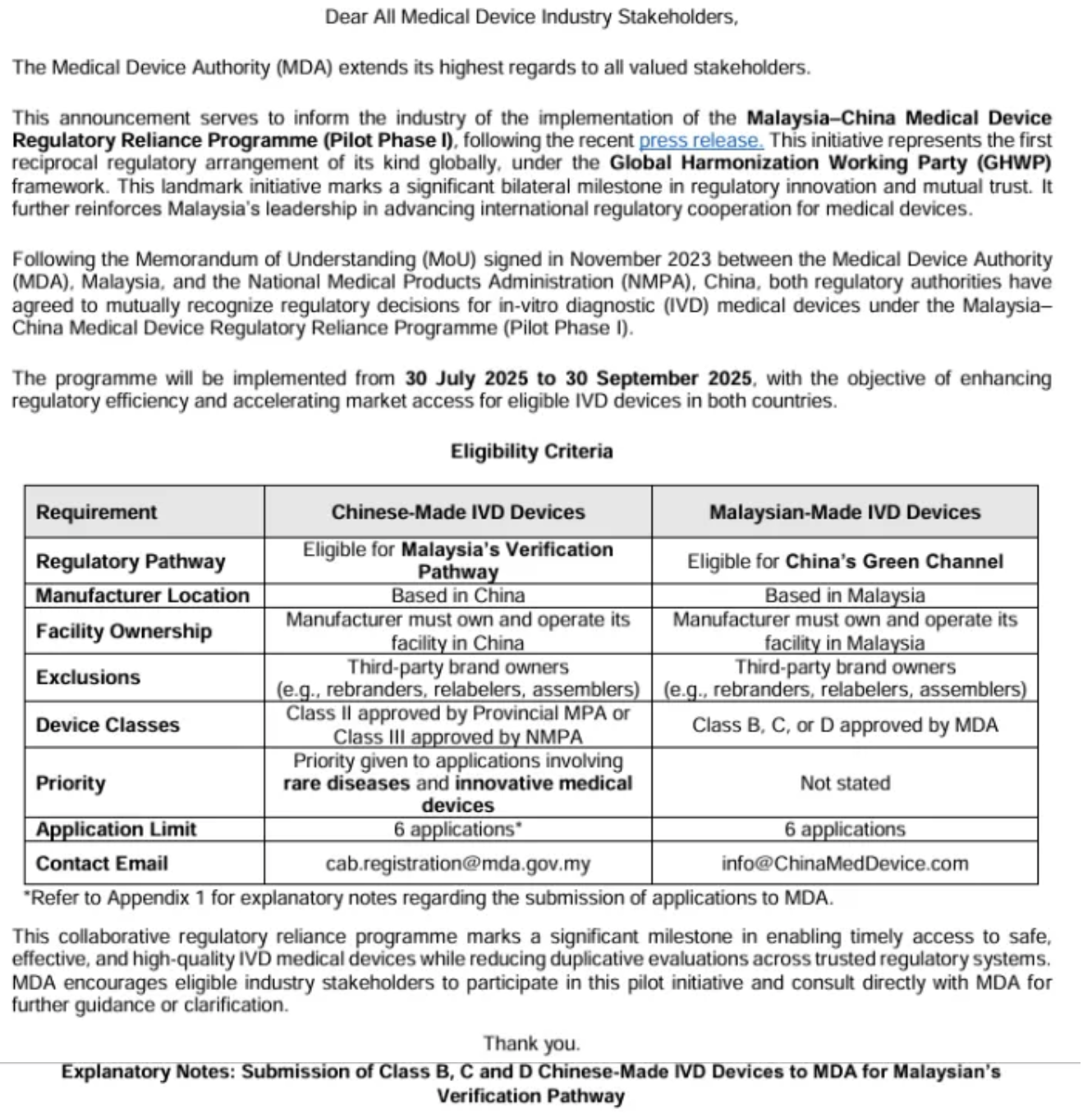 中马医疗器械互认计划第一阶段开始实施,试行60天!