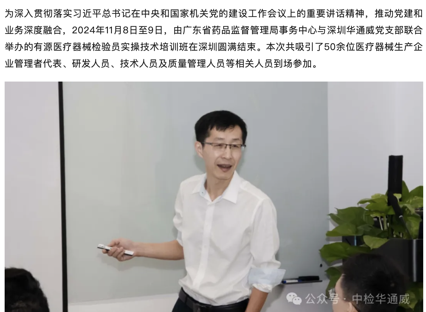 党建促业务丨中检华通威与省药监局事务中心成功举办实操技术培训班