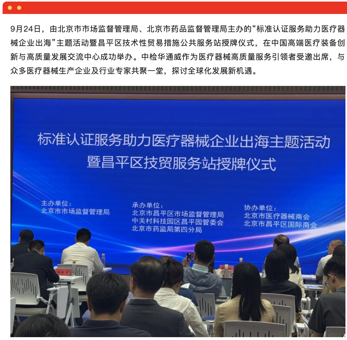 重要合作 标准认证服务助力医疗器械企业出海主题活动暨昌平区技术性贸易措施公共服务站授牌仪式成功举办