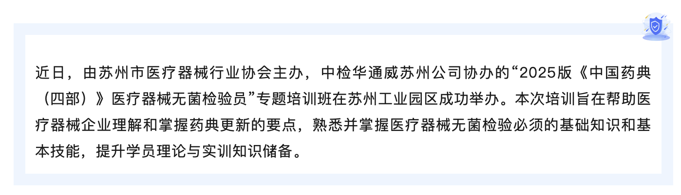 重要合作丨苏州2025版《中国药典(四部)》医疗器械无菌检验员培训成功举办