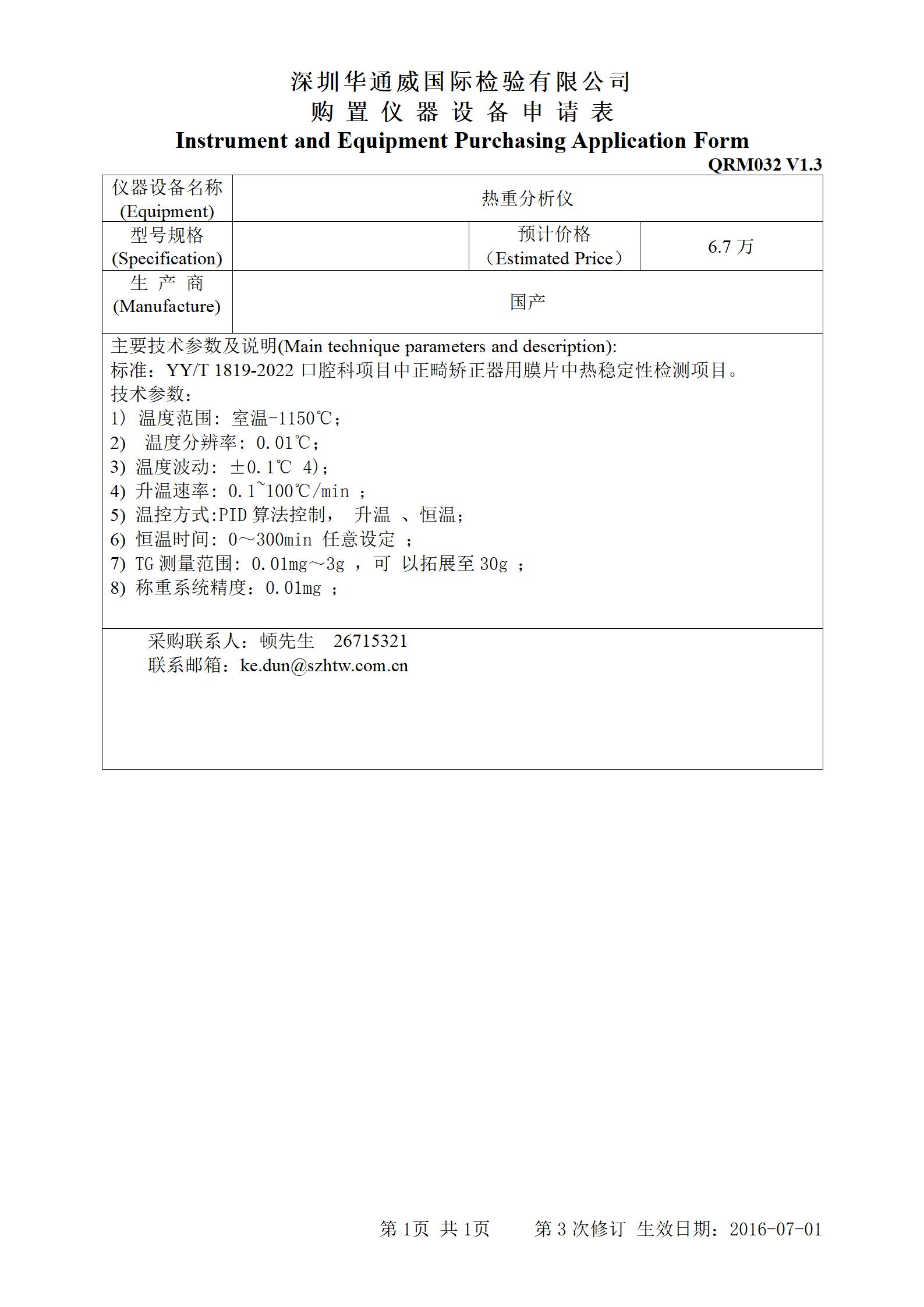 【招标采购】热重分析仪