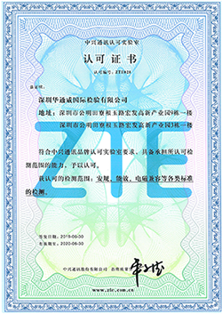 中兴通讯授权检测实验室授权证书